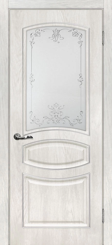 Качественная Межкомнатная дверь Сиена-5 Дуб жемчужный продается по цене 11 965 руб. за полотно. Доступные размеры 550x1900, 600x1900, 600x2000, 700x2000, 800x2000, 900x2000. Так же в наличии большой выбор комплектующих к данной модели, подходящих по цвету и фактуре.