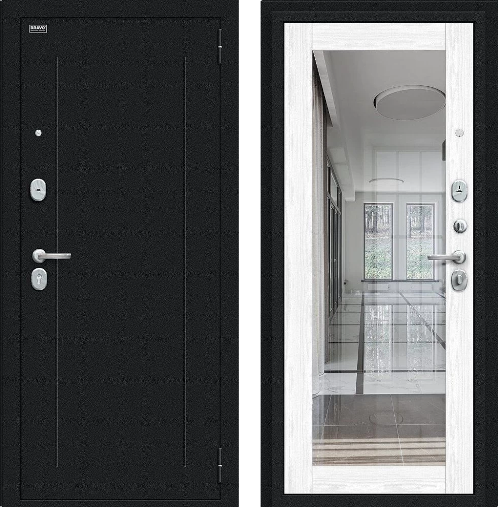 Надежная входная Дверь Браво Флэш Букле черное/Snow Melinga премиум класса по цене 32 961 руб. Большая толщина стали защитит от проникновения в ваш дом, квартиру или коттедж. Используется очень качественная фурнитура: замки, цилиндры, ручки, защелки. Покрытие и отделка двери изготовлено под внимательным контролем производителя. Дверь имеет долгий срок службы и гарантию.