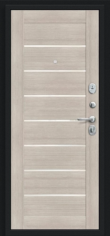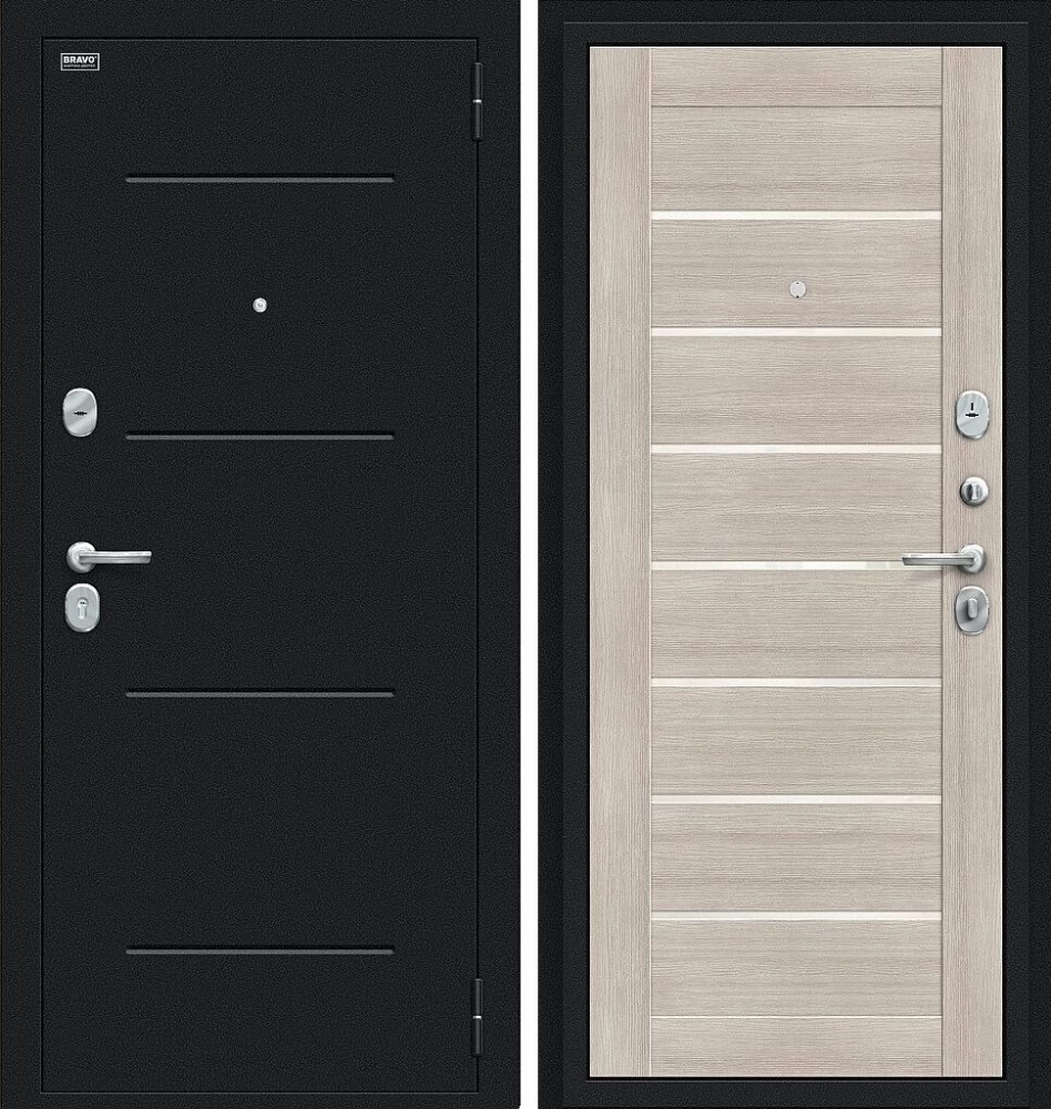 Надежная входная Дверь Браво Техно Букле черное/Cappuccino Veralinga премиум класса по цене 31 361 руб. Большая толщина стали защитит от проникновения в ваш дом, квартиру или коттедж. Используется очень качественная фурнитура: замки, цилиндры, ручки, защелки. Покрытие и отделка двери изготовлено под внимательным контролем производителя. Дверь имеет долгий срок службы и гарантию.