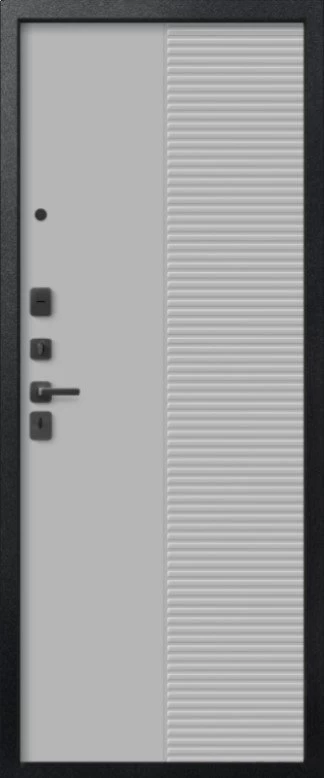Надежная входная Дверь V-18 Черный муар + Кашемир графит - Кашемир сильвер премиум класса по цене 46 761 руб. Большая толщина стали защитит от проникновения в ваш дом, квартиру или коттедж. Используется очень качественная фурнитура: замки, цилиндры, ручки, защелки. Покрытие и отделка двери изготовлено под внимательным контролем производителя. Дверь имеет долгий срок службы и гарантию.